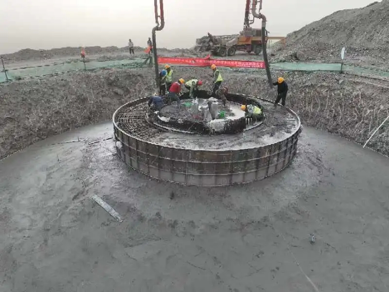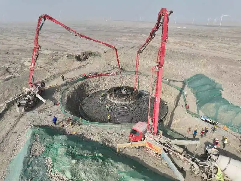 中电建玉门赤金 100MW 风电项目位于甘肃省酒泉市玉门市中南部,海拔高度在1700m~1900m之间,场址面积约 26km2。项目总装机容量达100MW,计划安装16台单机容量6.25MW 的风力发电机组,单台钢筋用量达71.41吨,混凝土用量高达745立方米,工程量大,技术要求高。