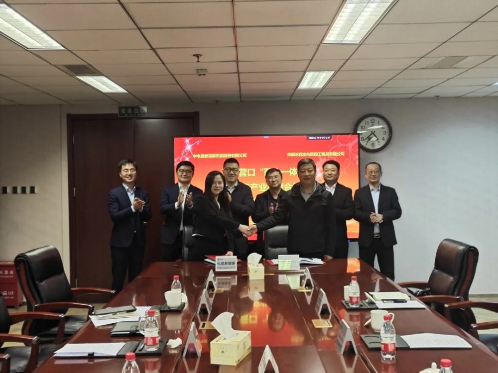 最后在与会人员的共同见证下,中电建新能源集团、中国水电四局签署《辽宁营口“两个一体化”风电装备产业项目合作协议》。
