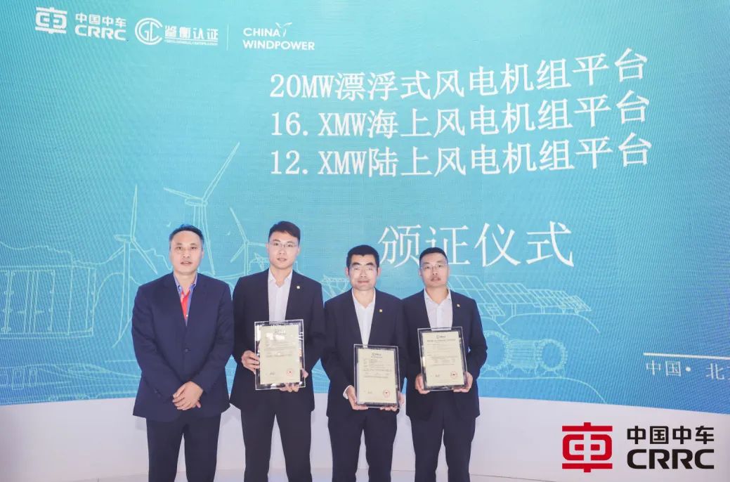 展会上,鉴衡认证中心为公司陆上12.XMW系列风电机组平台颁布认证证书。超大功率陆上12.XMW系列风电机组平台是中国中车面向“三北”大基地中高风速区域研制的最优LCOE产品解决方案平台。平台功率等级可实现10MW-14MW柔性配置,风轮直径拓展超过240米。平台引入高铁可靠性设计体系,产品质量安全可靠,相比同级别传统机组发电量提升2%以上。