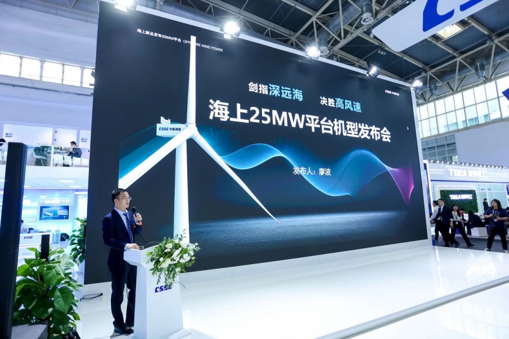 10月16日,展会第一天,中船海装重磅发布了H305-25MW平台海上风电机组和H242-12.5MW平台陆上风电机组两款新品,为海陆中高风速市场再添大兆瓦“利器”,稳步推动中国风电行业迈入更“大”时代。