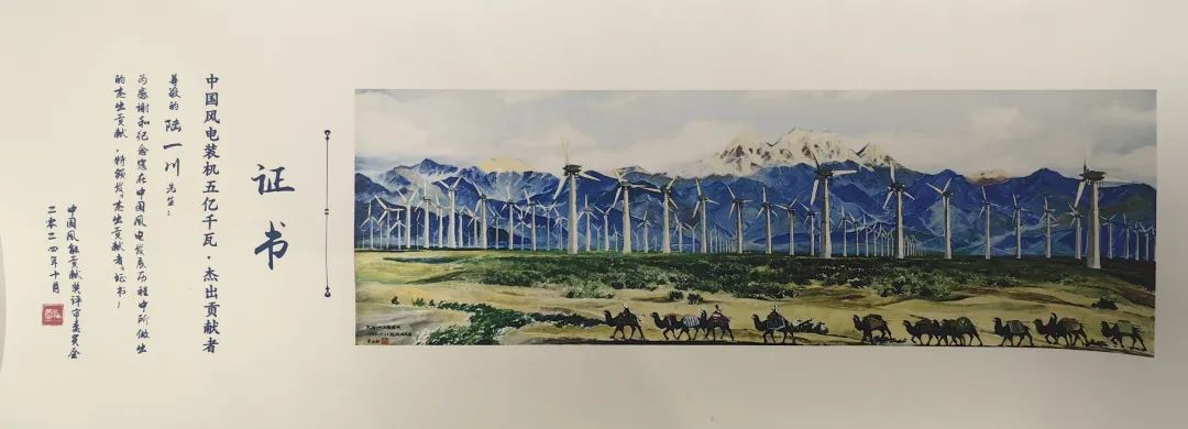 “中国风电装机五亿千瓦 · 杰出贡献者”证书
