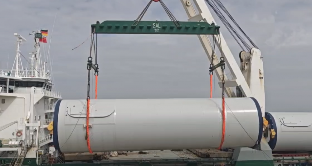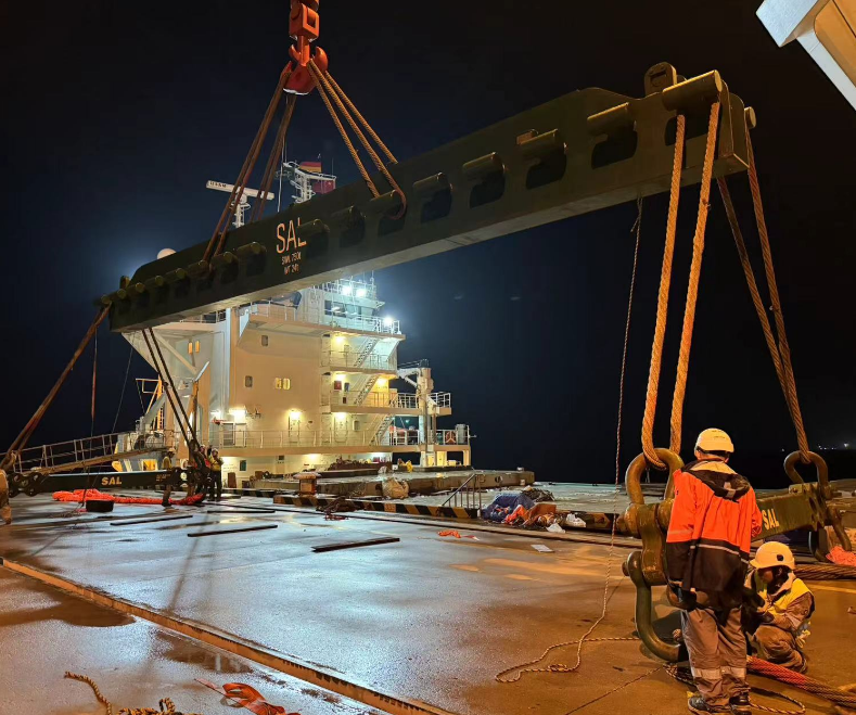 为确保项目首批货物顺利装船,东灶港口公司成立项目组,与货方、承运方多次进行深入沟通,充分了解海上叶片塔筒的结构特性,并结合东灶港装卸技术的优势,制订了科学合理的装卸作业专项工艺方案。项目实施过程中,项目组提前进行实地勘察,赶在叶片塔筒在海关场地监管区出运之前,便与制造商、货代及船公司召开四方现场协商会议,制订详细吊装工艺方案。随后,项目组又与货方、船方就船舶到港时间、装载情况及操作注意事项等关键事宜逐一确认。吊装出运前,项目组再次前往货物存放场地进行工艺复核确认工作,确保装运工作万无一失。 作业当日上午,项目组周密部署重大件作业安全措施,安排经验丰富的现场操作员负责执行作业任务,开工前,再次核对货物的重心、吊点、受力部件及工索具等实际状况,确保所有机械、货物、工索具处于安全状态。随着现场指挥员一声令下,船吊缓缓启动,吊具在空中划出一道优美的弧线,精准地向货物的起吊中心移动。操作员凭借着丰富的经验和精湛的技艺,熟练调整操作手柄,让吊具缓缓下降,稳稳对准塔筒重心位置的吊装点。与货物连接完毕后,经指挥员再次确认所有吊点、工索具安全完好后,在指挥员的指引下,塔筒平稳跨过船舷,准确落至船舶指定装载位置。经过几天的连续奋战,15段海上叶片塔筒顺利装载到了“MARIA 玛丽安”轮上。 首批“维斯塔斯(VESTAS)日本线HiBiKi塔筒”项目的成功出运,充分展现了东灶港口公司的风力产业链大件服务水平。后续,该公司将继续做好该项目剩余60件塔筒出口的装载任务,打造海门东灶港口公司服务“金字招牌”。
