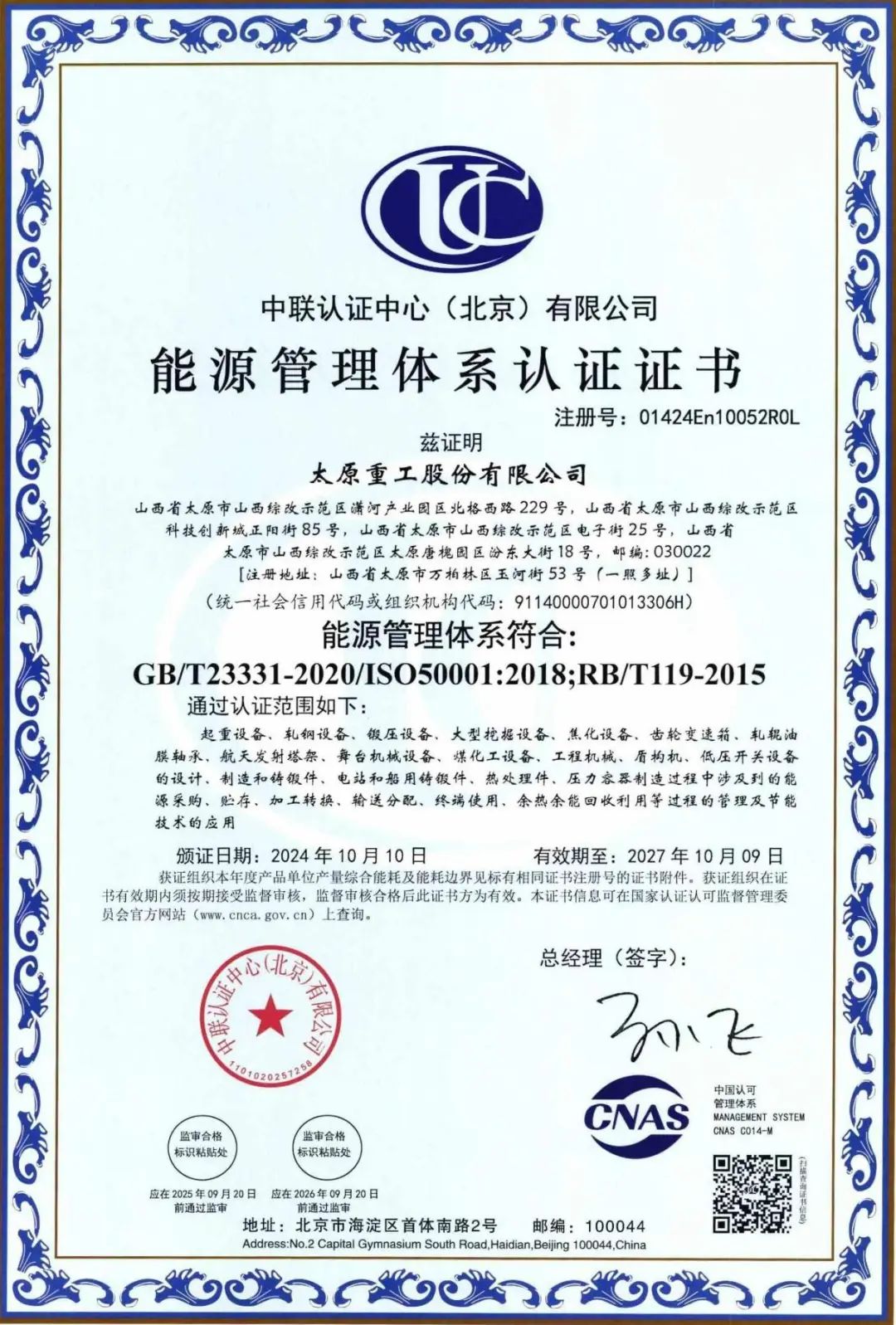 此次认证的获得,不仅是对公司能源工作的肯定,也印证了太重正朝着标准化、程序化、规范化的现代化企业管理不断迈进。未来,公司将依托先进能源管理体系及集控平台,进一步完善能源管理制度、强化能耗计量与节能监测、同步推动管理节能与技术节能,在培育和发展新质生产力的过程中,开创绿色低碳发展新局面。