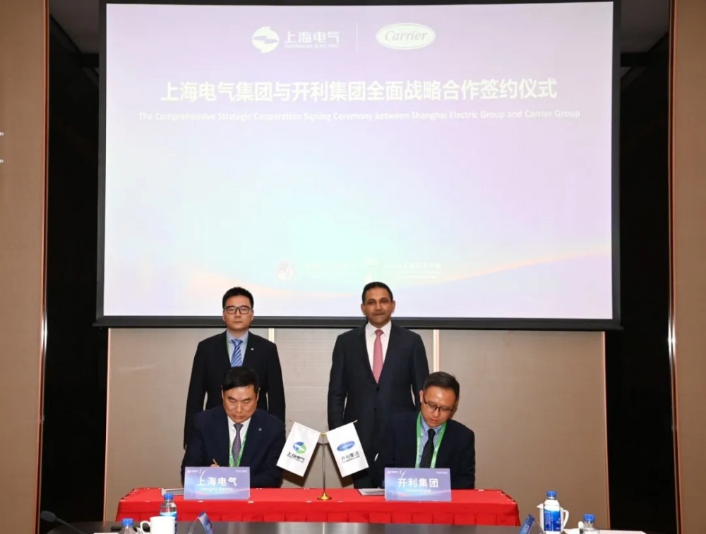 上海电气与开利集团的合作1987年便拉开了序幕,成为中国改革开放后工商业空调领域的首批合资企业,也是上海电气合资历程中的重要里程碑。多年来,双方合资企业凭借先进的技术、卓越的品质以及优质的服务,成功占据了市场先机。如今,在中国本土,双方不仅能够生产全球领先的制冷空调产品,更将业务拓展至亚太及欧美市场,成为全球暖通空调产业链的关键一环。自2023年以来,双方又携手启动了战略合作升级,合作视野更加宽广,领域更加多元,力度更加深入,并在多个领域取得显著进展。