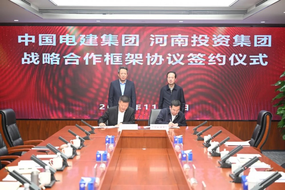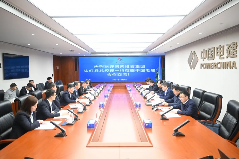 11月6日,中国电建党委书记、董事长丁焰章在总部与河南投资集团总经理、党委副书记、副董事长朱红兵举行会谈,双方就进一步加强能源电力等领域合作进行深入交流,并共同见证双方战略合作协议签署。