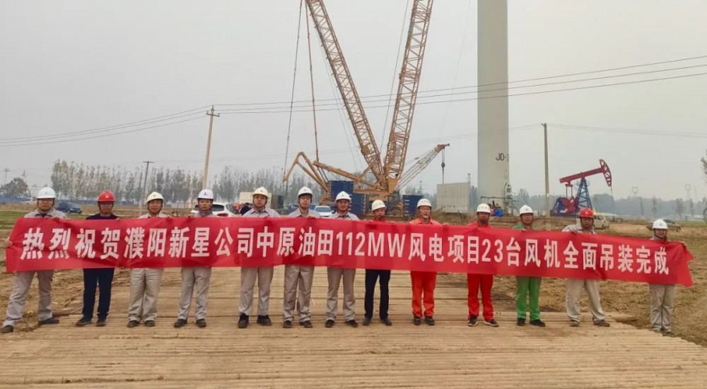 11月11日,新星河南公司中原油田风电项目最后一台风机吊装工作完成,为实现年底全容量并网迈出了坚实一步。