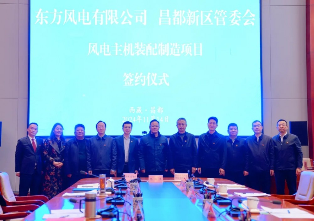 会前,东方风电与昌都新区管委会签署了“风电主机装配制造项目”合作协议。根据协议约定,东方电气风电股份有限公司风电主机装配制造项目入驻昌都新区,双方将在清洁能源高端装备制造、清洁能源项目开发等方面开展深入合作。昌都市领导罗庆伍、魏兴贵、吕国健、贾新雨见证协议签订或参加座谈。