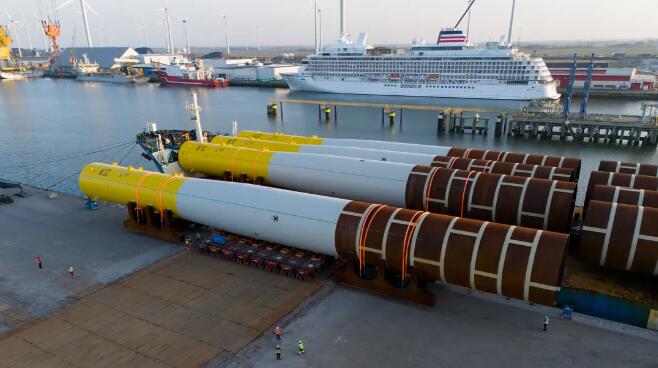 2023年,大金重工成功中标位于德国北海海域的Nordseecluster 海上风电集群项目供货合同,大金将为该项目独家建造并交付合计105根超大型单桩。2025年8月,大金重工已圆满完成此项目 A 阶段全部 45 套超大型 TP-less 单桩的生产制造与跨洋运输工作。Nordseecluster是RWE(持股51%)与挪威银行投资管理公司(持股49%)共同开发的联合海上风电项目。RWE负责Nordseecluster海上风电场全生命周期内的建设与运营工作。
