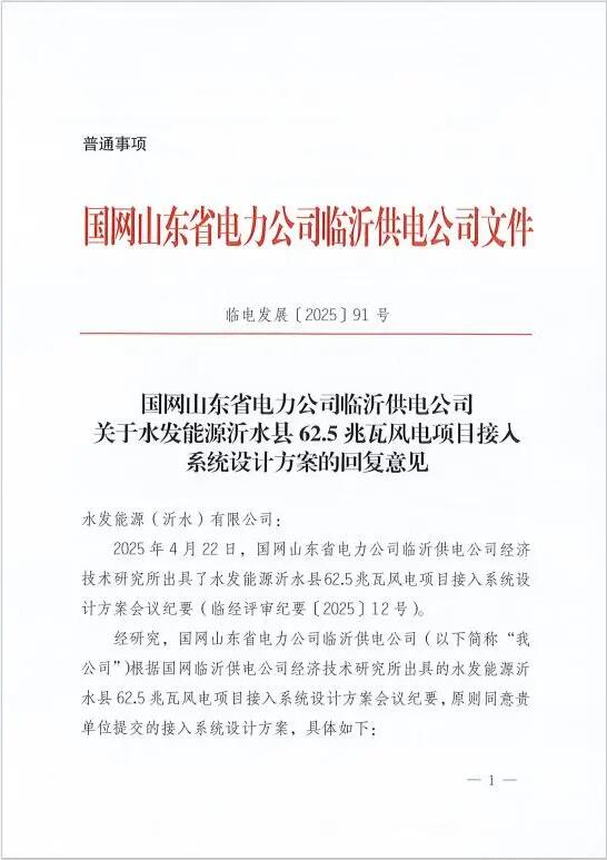 近期,水发能源沂水62.5MW风电项目获得国网临沂公司准予接入批复。这是继获得核准批复后,该项目再次取得关键性进展。