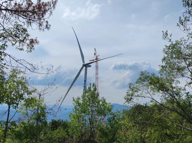 8月26日,巴中通江风电A标项目首台风机顺利吊装完成。