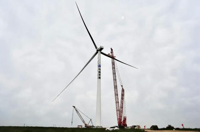本次吊装的10兆瓦风机轮毂中心高度达130米,叶轮直径230米,单片叶片长112米,是目前北方公司在建单机容量最大的风机之一,单台规模及各项技术水平均位于国内陆上风电机组前列。