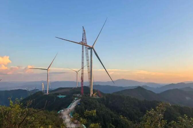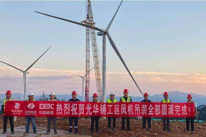 8月25日下午,随着最后一台风机吊装完成,广西新能源风电项目光华铺工区顺利完成全部风机吊装任务,标志着工程进入并网倒计时阶段。