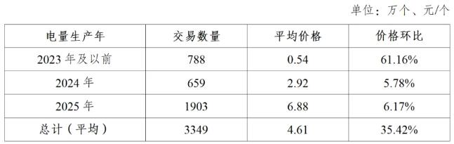 2025年7月,全国单独交易绿证3349万个,交易平均价格为4.61元/个,环比增长35.42%。