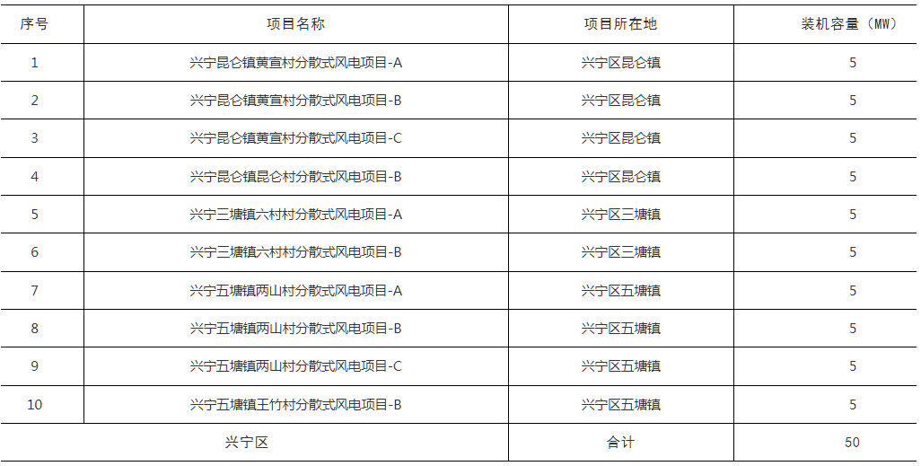 根据公示,广西南宁市兴宁区拟建设兴宁昆仑镇黄宣村分散式风电项目-A等10个项目,总容量50MW,已纳入《南宁市分散式风电规划项目清单》。