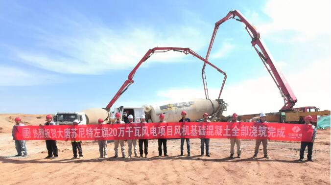 9月12日午时,随着最后一方混凝土顺利入仓,大唐苏尼特左旗20万千瓦风电项目风机基础浇筑工作全部完成,标志着该项目转入风机待吊装阶段,为完成本年度土建施工目标奠定了坚实基础。