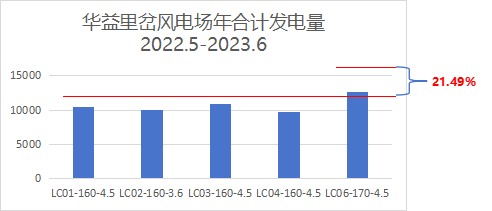 位于青岛胶州的风电项目,采用华斯壮预应力构架式风塔,机组可稳定捕捉160米及以上高空的有效风速。通过实际发电数据表明,同样机组型号下,轮毂高度为170米的单台风机在13个月内的发电量(12616.26MW)相较于轮毂高度为160米的单台风机在13个月内的发电量(10384.94MW)高出21.49% ,建议在高切变区域,轮毂高度优先选取较高高度,此举有助于提升投资回报率。