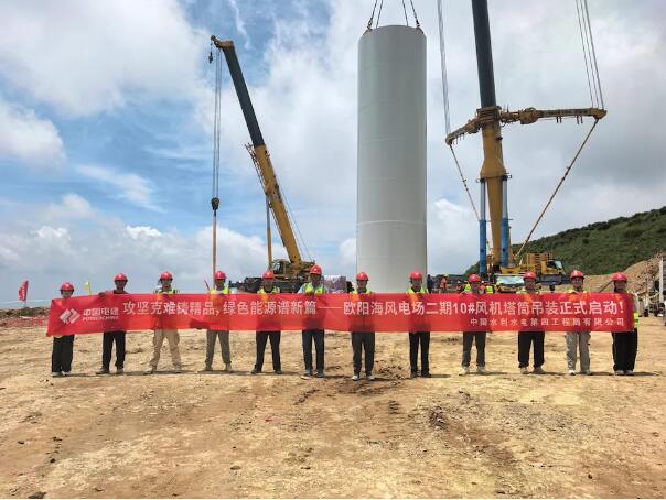 9 月 17日,湖南省桂阳县欧阳海风电场二期项目首台 5.0 兆瓦风力发电机组完成吊装作业,标志着项目正式进入风机批量安装与并网冲刺阶段。