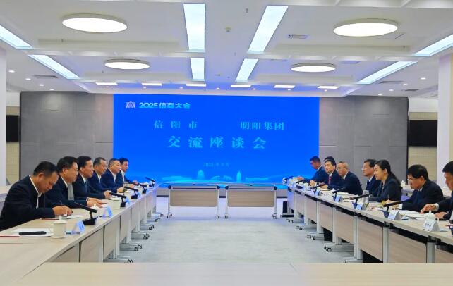 9月25日,信阳市市委书记张宏伟、信阳市市长陈志伟与明阳集团董事长张传卫座谈交流,表示坚定支持明阳扎根家乡做大做强,打造中部新能源产业高地。