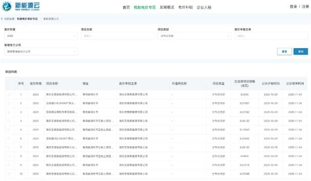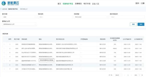 国网新能源云平台10月29日发布了参与青海省参与新能源竞价的资质审核结果。