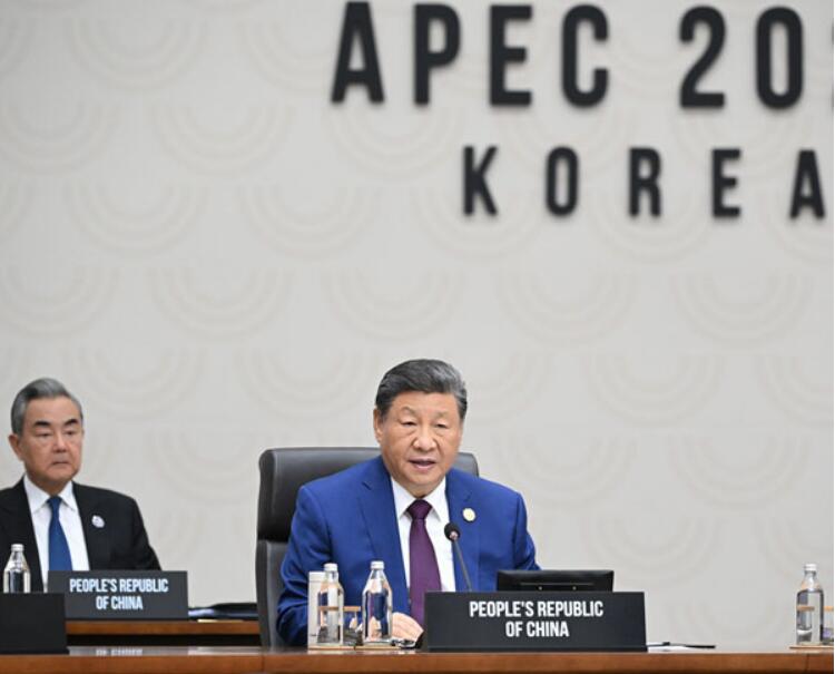 当地时间2025年11月1日上午,国家主席习近平在韩国庆州出席亚太经合组织第三十二次领导人非正式会议第二阶段会议,并发表题为《共同开创可持续的美好明天》的重要讲话。