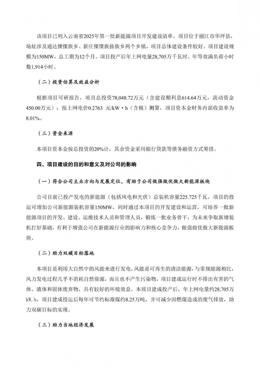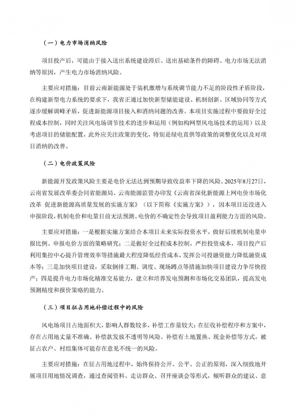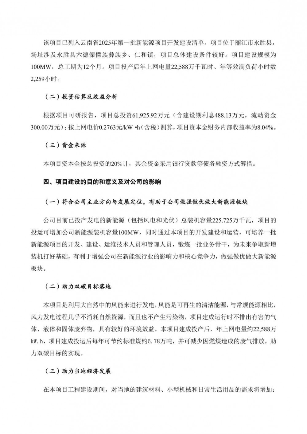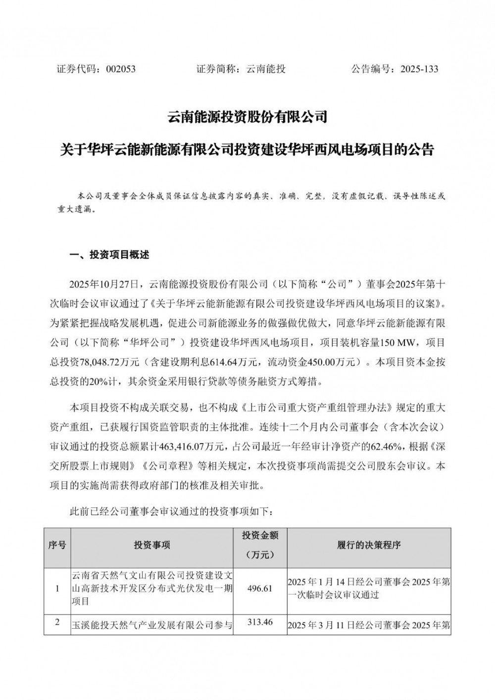 10月29日,云南能源投资股份有限公司发布关于永胜云能新能源有限公司投资建设阿谷子风电场项目的公告。