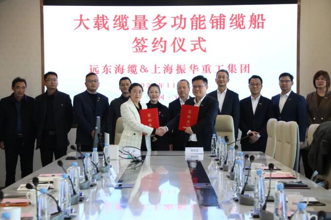 11月18日,上海振华重工集团和远东控股集团在江苏宜兴举行大载缆量多功能铺缆船EPC项目签约仪式。远东控股集团党委副书记、电缆产业首席执行官陈静,上海振华重工集团党委常委、副总裁张健等出席签约仪式。