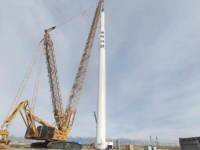11月20日,由新疆分公司承制的金风国创中心达坂城13万千瓦风光同场示范项目首套塔筒顺利吊装。