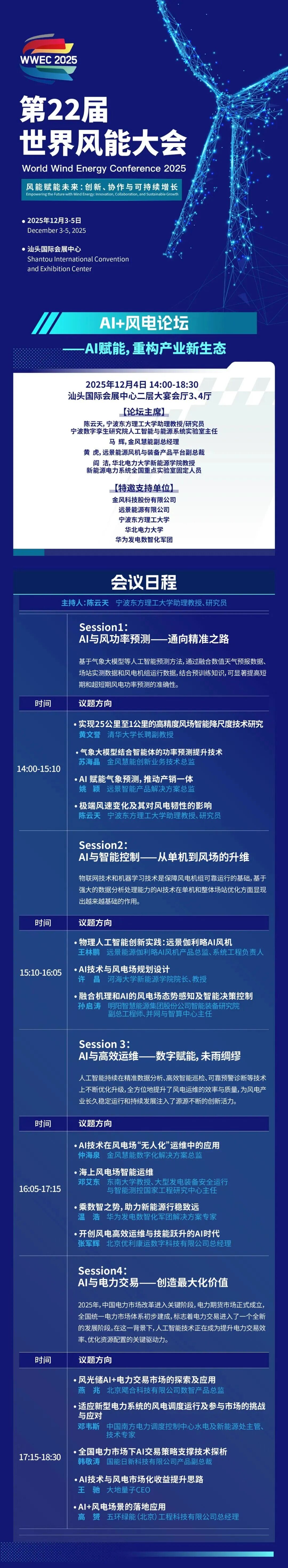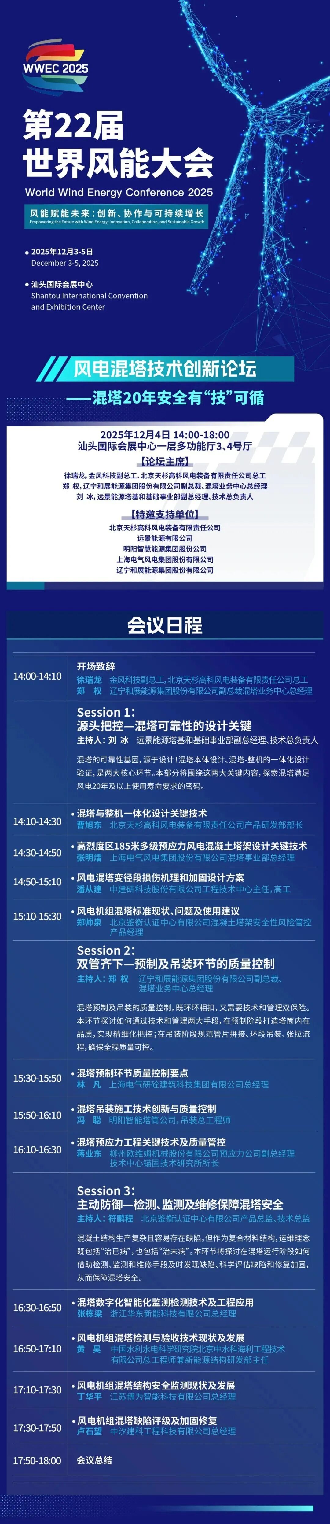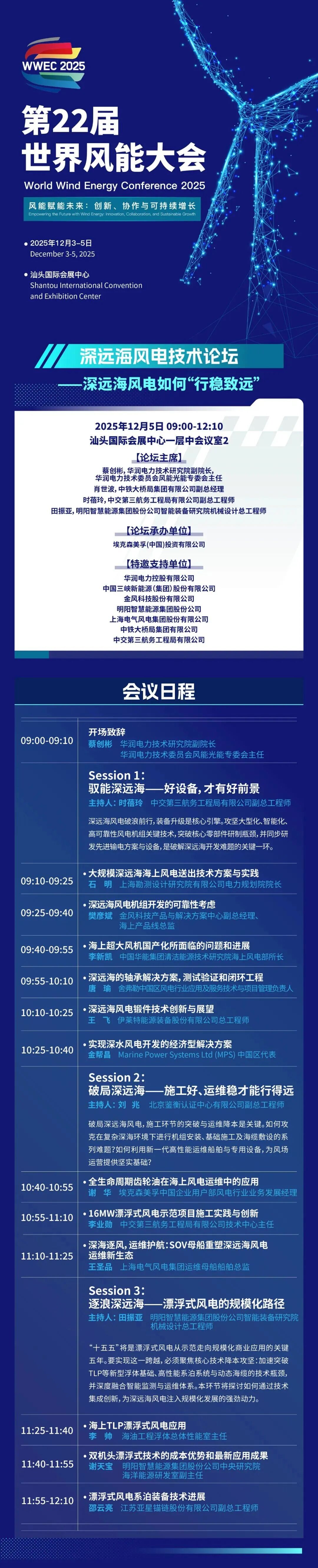 目前,大会详细日程发布并持续更新中,我们诚邀您共赴汕头,携手行业领袖共探风电发展新路径,共创零碳未来新机遇!