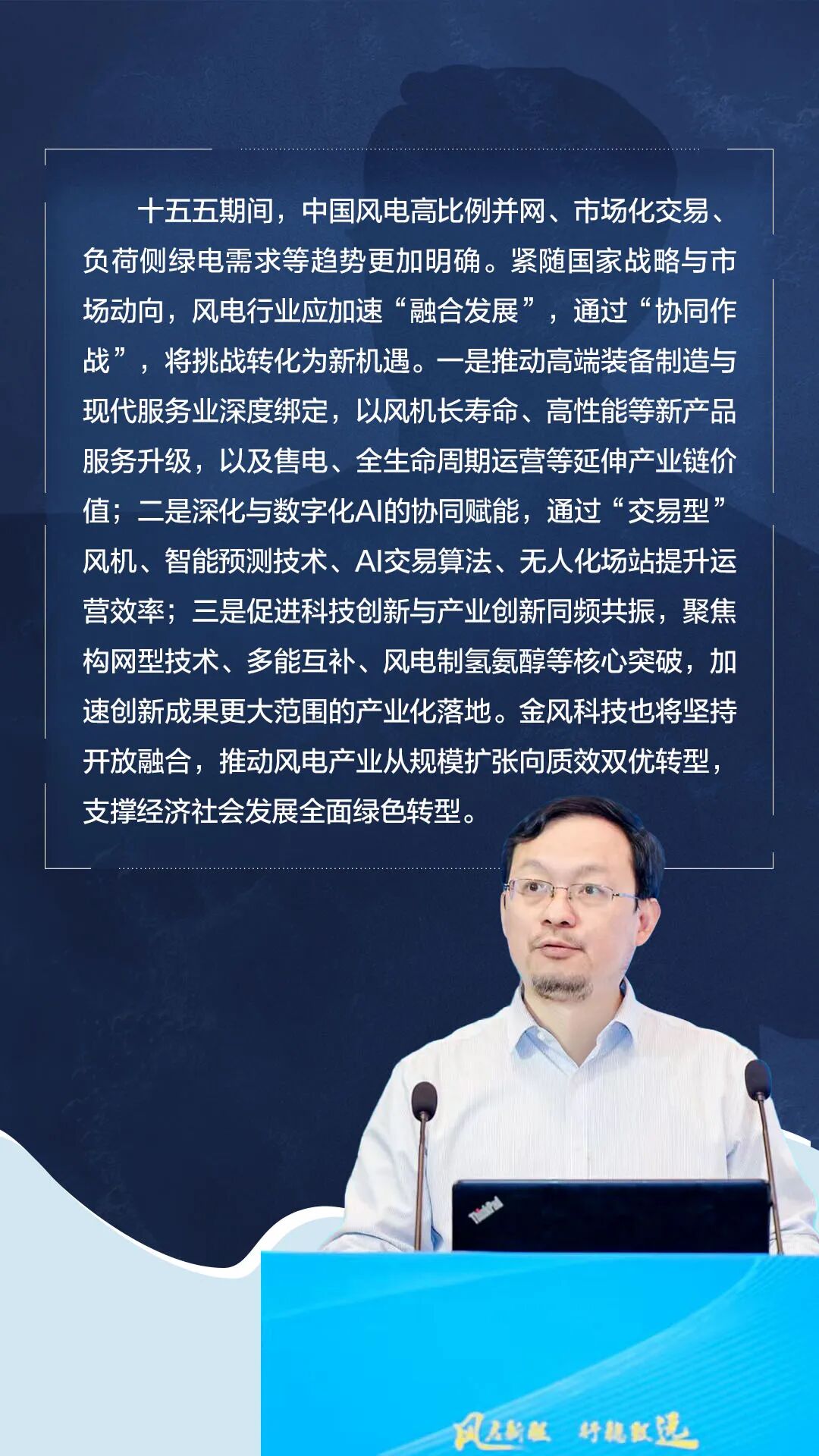 “十五五”是中国建设新型能源体系、实现碳达峰的关键时期,也是中国新能源从“规模”到“价值”蜕变的重要机遇期。金风科技将继续秉持“集成融合发展”理念,积极参与“协同作战”,为形成能源行业“联合舰队”,乃至各行各业的“价值共同体”作出扎实贡献。