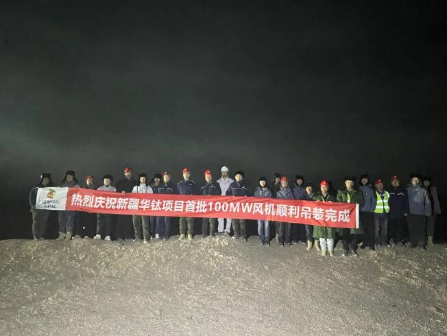 11月28日19时,随着最后一片风机叶片在百米高空精准对接,由源天公司承建、西南公司负责施工的新疆华钛新材料源网荷储600兆瓦风电项目,首批100兆瓦风电机组全部吊装完成,项目建设取得阶段性重大进展。