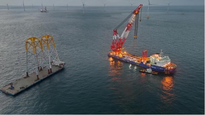 此外,依托海上风电智慧平台,项目团队将气象预报与施工工序融合,精准预测各道工序窗口期条件,合理调配起重船、运输船等大型设备,有力抢抓每一个“窗口期”,以决战决胜四季度的奋进姿态在同台竞技中率先完成关键节点。