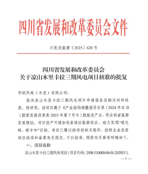12月19日,华润电力四川公司凉山木里卡拉三期10万千瓦风电项目成功取得四川省发展和改革委员会核准批复,标志着华润电力华中大区首个风光同场项目正式迈入实质性阶段。