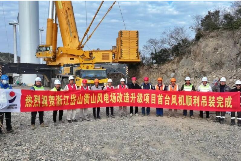 近日,浙江省工业设备安装集团有限公司第四分公司承建的浙江岱山衢山风电场改造升级项目17台6.25MW发电机组安装工程首台机组顺利吊装完成,标志着该项目风电机组吊装工作正式拉开序幕。