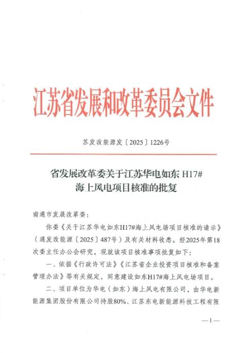 在江苏公司上下勠力同心、高效协同推进下,2025年12月24日,江苏华电如东H17#45万千瓦海上风电项目成功取得核准,为公司决胜“十四五”战略收官提供了重要支撑。