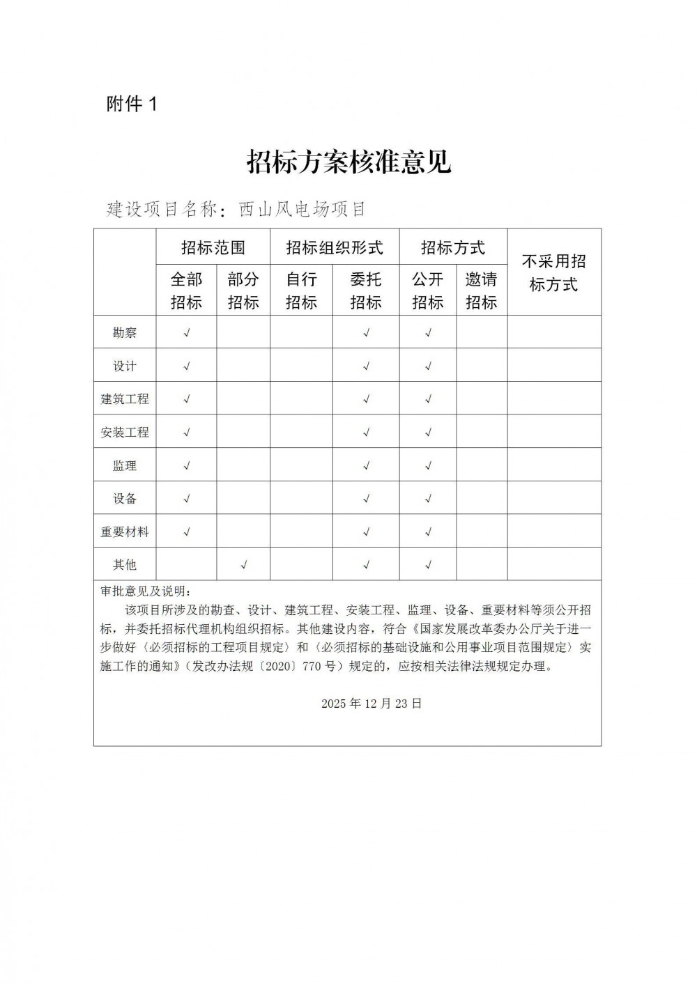 一、西山风电场项目已列入《云南省2024年第二批新能源项目开发建设方案》(云能源新能〔2024〕194号),项目建设符合云南省新能源实施计划。为有效利用当地风能资源,提高区域供电能力,依据《云南省人民政府关于印发云南省企业投资项目核准和备案实施办法的通知》(云政规〔2023〕2号)、《云南省发展和改革委员会关于印发规范风电项目核准管理有关事项的通知》(云发改能源规〔2023〕2号)等有关规定,同意建设西山风电场项目(项目代码:2505-530000-04-01-986785)。项目单位为中电清能(祥云)新能源有限公司。