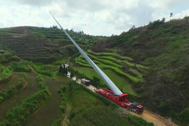 技术突破是该项目攻坚的硬核支撑,作为云南首个10兆瓦大容量机组山地风电项目,面临大机组建设经验不足的行业难题,加之现场雨季绵长、极端天气频发、沿途高速塌方、叶片发运地大雪、山地道路狭窄崎岖等客观因素,风机大件运输面临严峻考验。为妥善解决以上难题,该项目迅速成立技术攻坚小组,反复踏勘优化运输路线、定制专项运输方案,破解山地大件运输瓶颈;针对雨季施工痛点,制定专项施工预案,定期巡视路段排查塌方、山体滑坡等突发情况,抢抓晴好窗口期高效推进基础浇筑、风机吊装作业,协调多地政府部门临时拆除障碍、加固路基。同时,借鉴行业先进经验,结合该项目实际优化大机组安装调试工艺,成功补齐技术短板,实现施工质量与建设进度双提升。