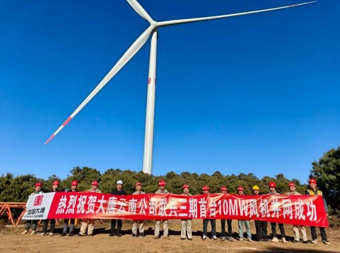 12月28日16时08分,滇中新能源事业部联兴风电场三期工程首台10兆瓦风力发电机组并网发电,标志着该项目建设取得阶段性重大突破。该项目位于玉溪新平建兴乡,平均海拔2200米,总装机容量50兆瓦,设计安装5台单机容量为10兆瓦的风机,塔筒高度118米,叶轮直径222米,是云南地区首个采用10兆瓦大容量机组的山地风电项目。