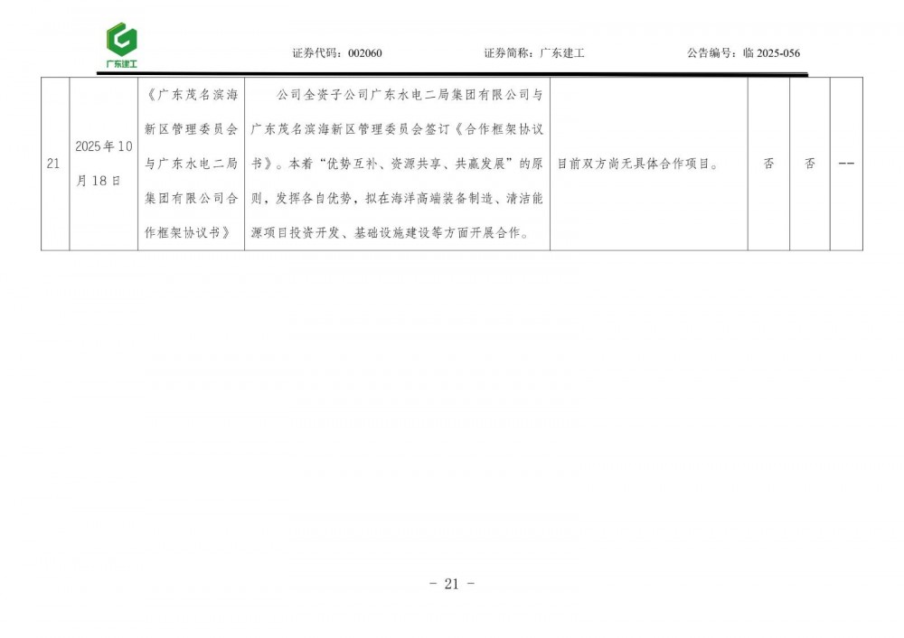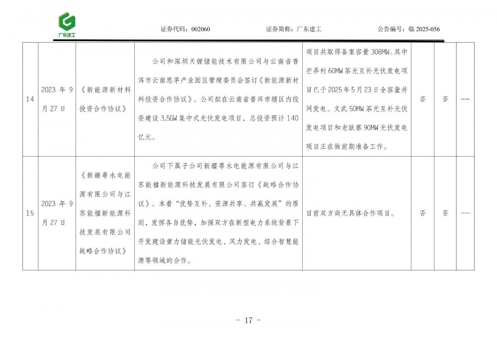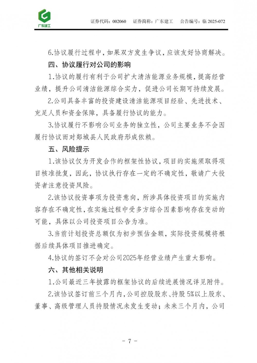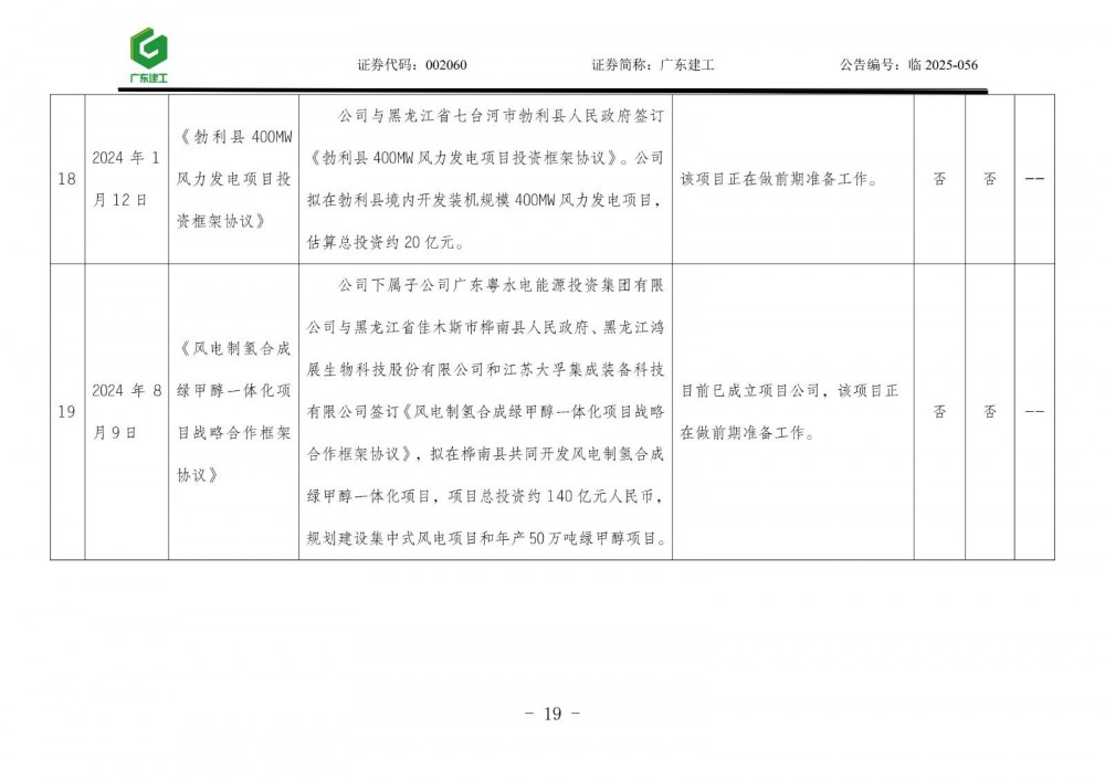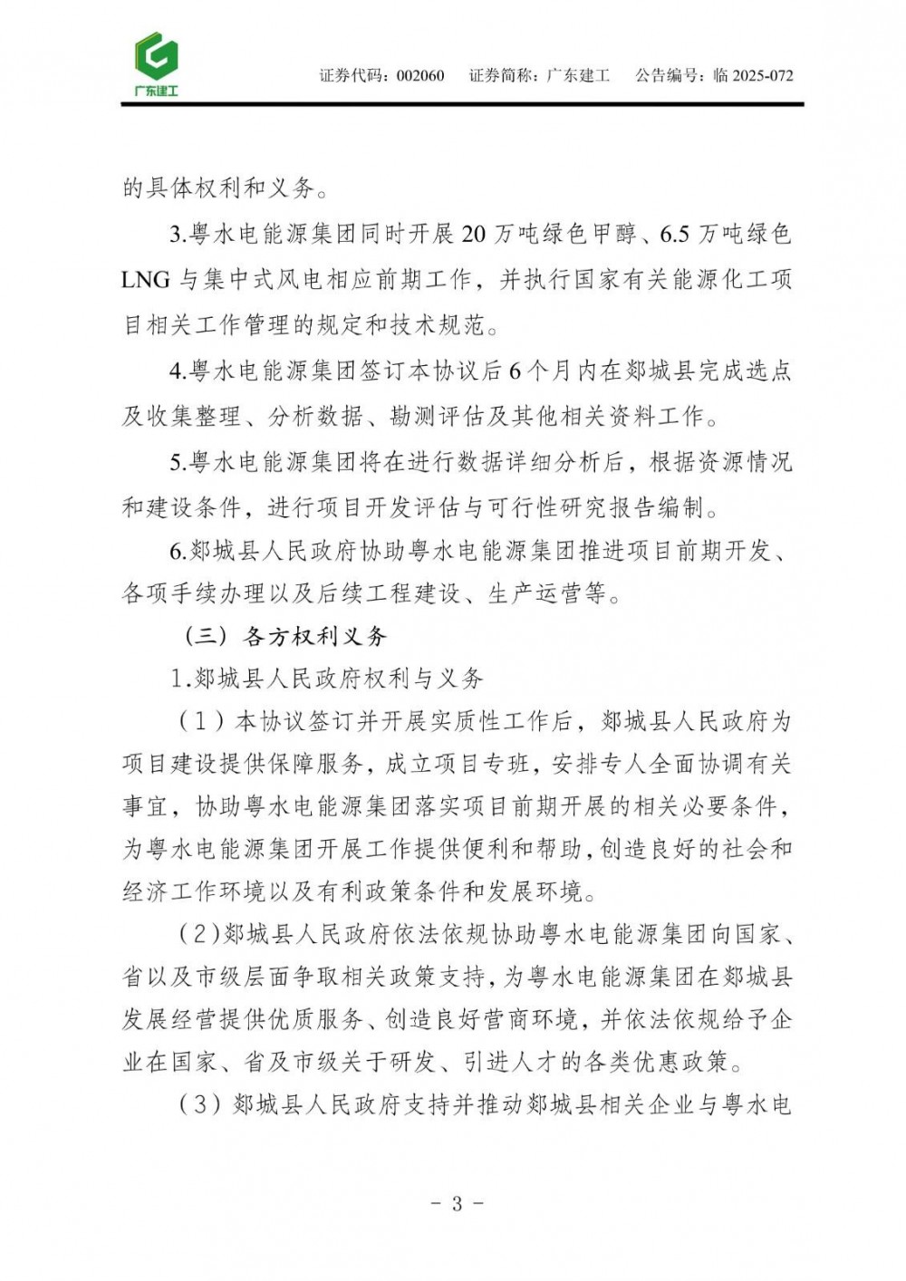 公告显示,12月26日,广东建工全资孙公司广东粤水电能源投资集团有限公司与山东省临沂市郯城县人民政府在临沂市签订《绿色甲醇项目投资合作框架协议》,拟在临沂市郯城县投资建设绿色甲醇、绿色LNG及集中式风电项目。