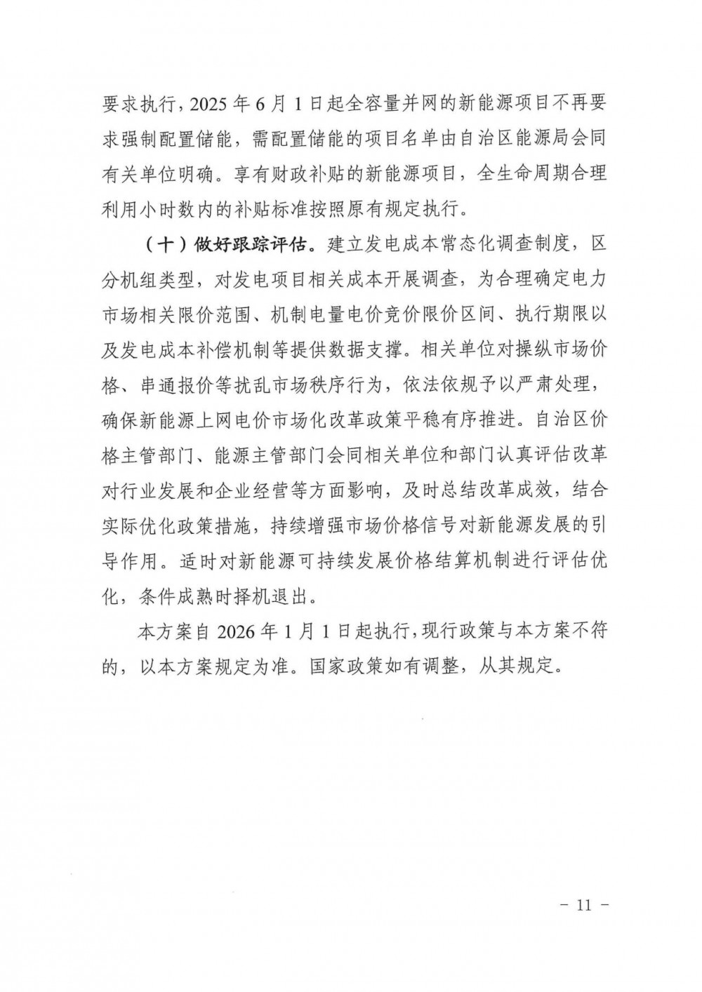 执行期限。结合广西新能源项目和电力市场发展等有关情况,过渡期暂定为3年,视实际情况调整。