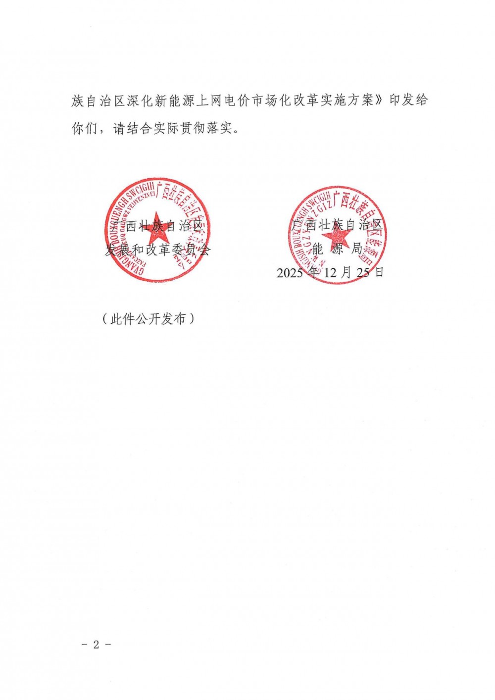 12月29日,广西壮族自治区发展和改革委员会 广西壮族自治区能源局发布关于印发《广西壮族自治区深化新能源上网电价市场化改革实施方案》的通知。