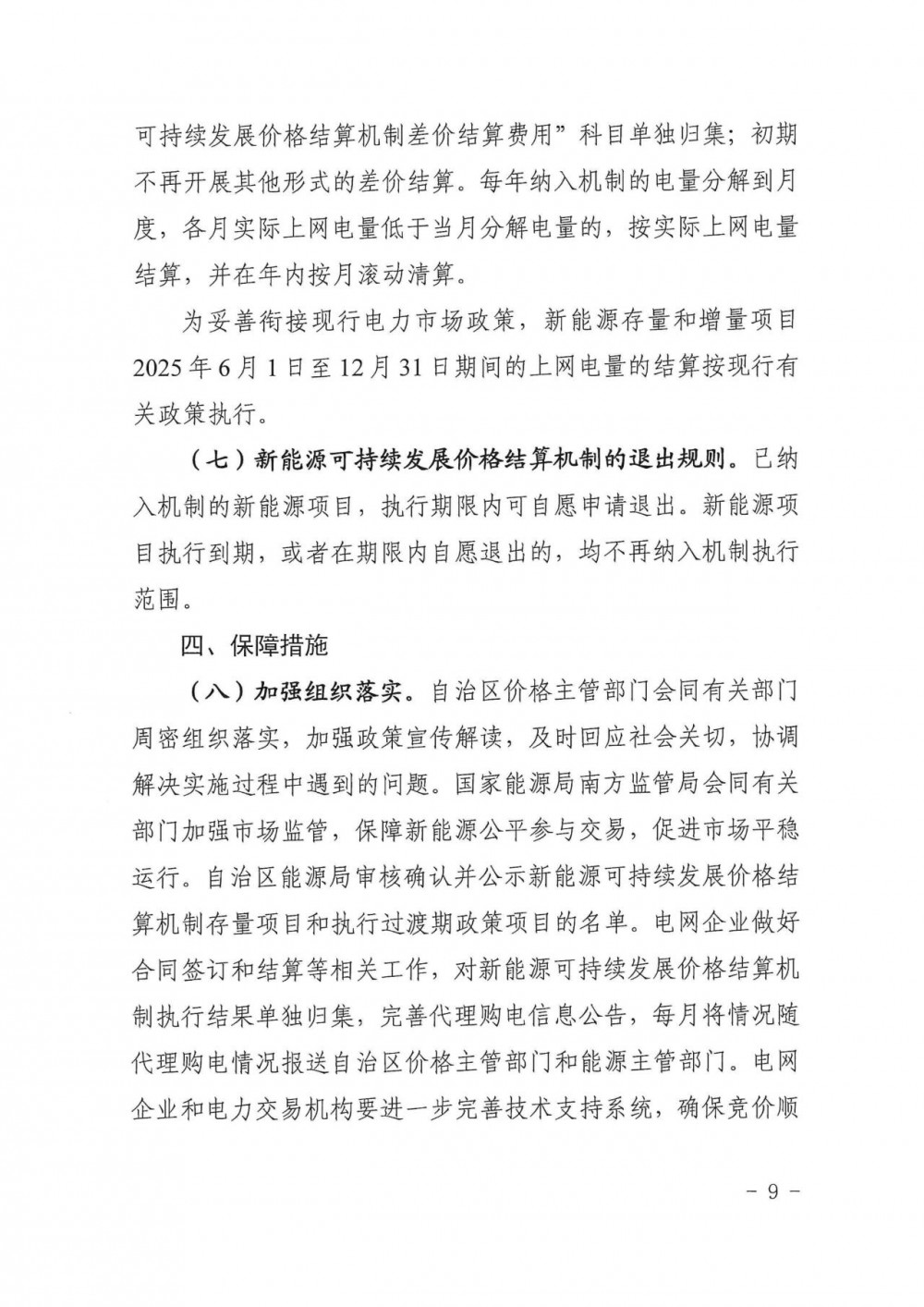 做好新能源可持续发展价格结算机制与广西电力市场交易政策的有效衔接,对已进入电力市场的新能源项目实行过渡政策。