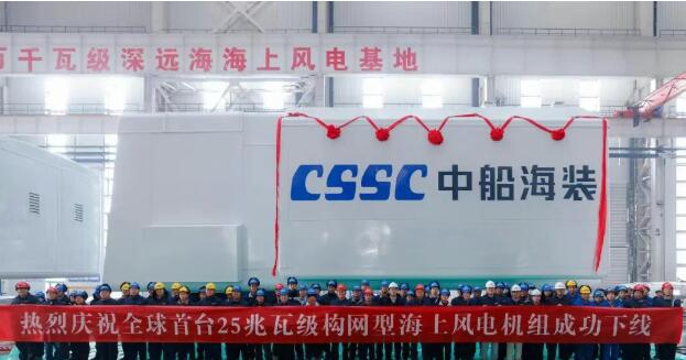 12月30日,中船集团旗下中船科技自主研制H305-25MW在山东成功下线,作为全球首台25兆瓦级构网型海上风电机组,一举刷新了风电行业构网型海上风电单机容量与技术集成的全球纪录。这一里程碑式成果,为海上风电进军弱电网、挺进深远海提供关键装备支撑,彰显了我国在全球新能源装备领域的技术引领力,为2025年收官写下圆满句号。