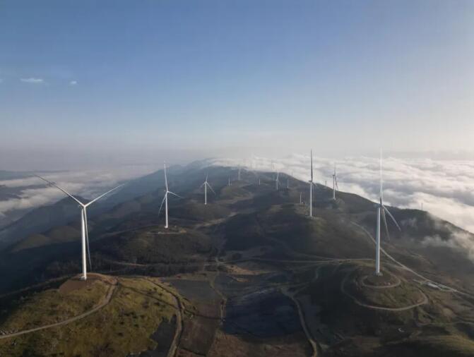 ▲改造后的齐岳山风电场屹立于山巅,为鄂西绿色发展注入动能。图为齐岳山风电场“以大代小”改造项目 摄影:冯家坤