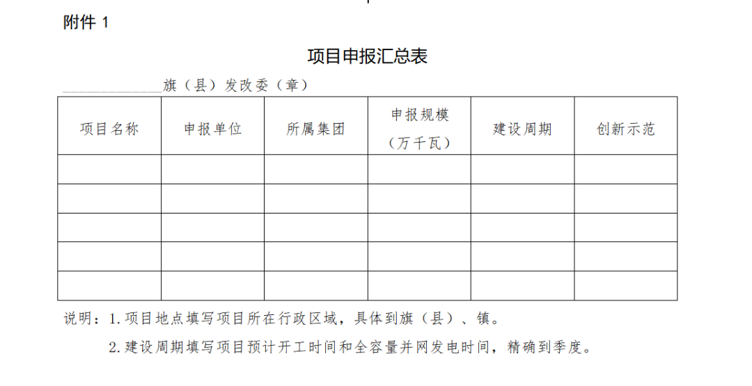 项目申报要求指出,单个申报项目规模不低于10万千瓦,同一申报主体最多可以申报1个项目,同一旗县报送申报项目个数不超过3个。