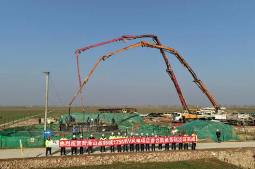 近日,由正晨科技负责菏泽山高综合能源有限公司郓城县17.5万千瓦分散式风电项目首台风机基础混凝土浇筑工作顺利完成,成为山东省“十四五”规划实施以来首个完成基础浇筑的分散式风电项目,为全省分散式风电产业发展树立了标杆,标志着山东新能源产业布局再添重要节点。
