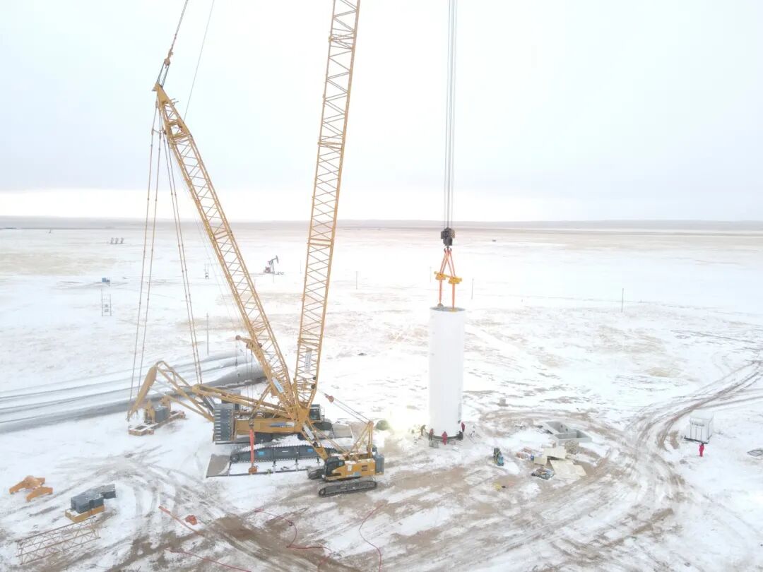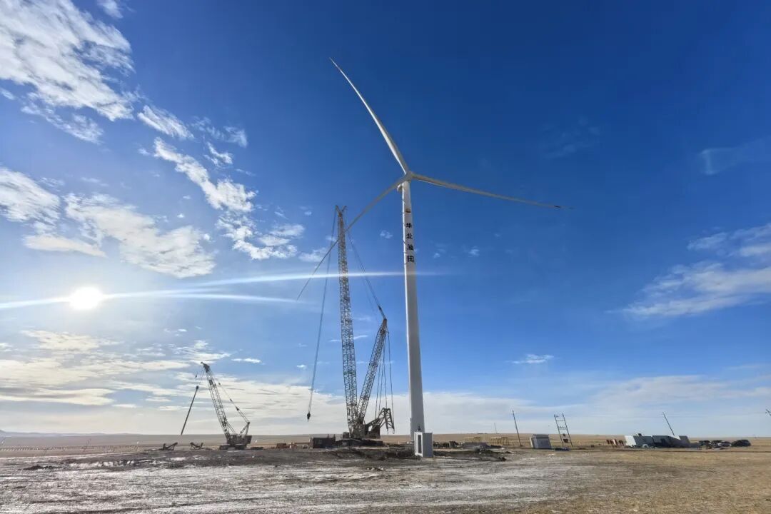 寒风如刀,雪原寂寥。1月3日15点20分,随着最后一组连接螺栓在严寒中紧固到位,由CPECC华北分公司EPC总承包建设的华北油田二连分公司阿尔油田、宝力格油田低碳生产建设工程圆满完成宝力格6.7MW风机和阿尔4MW风机吊装,标志着项目绿电系统建设取得关键突破,锡林郭勒盟东乌旗区域首个兆瓦级风机项目正式落成。