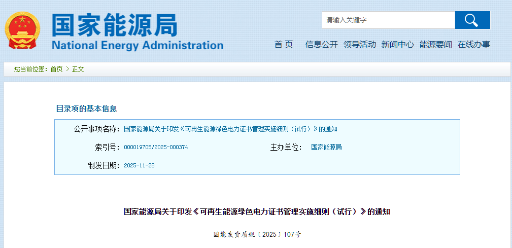 1月7日,国家能源局发布关于印发《可再生能源绿色电力证书管理实施细则(试行)》的通知。