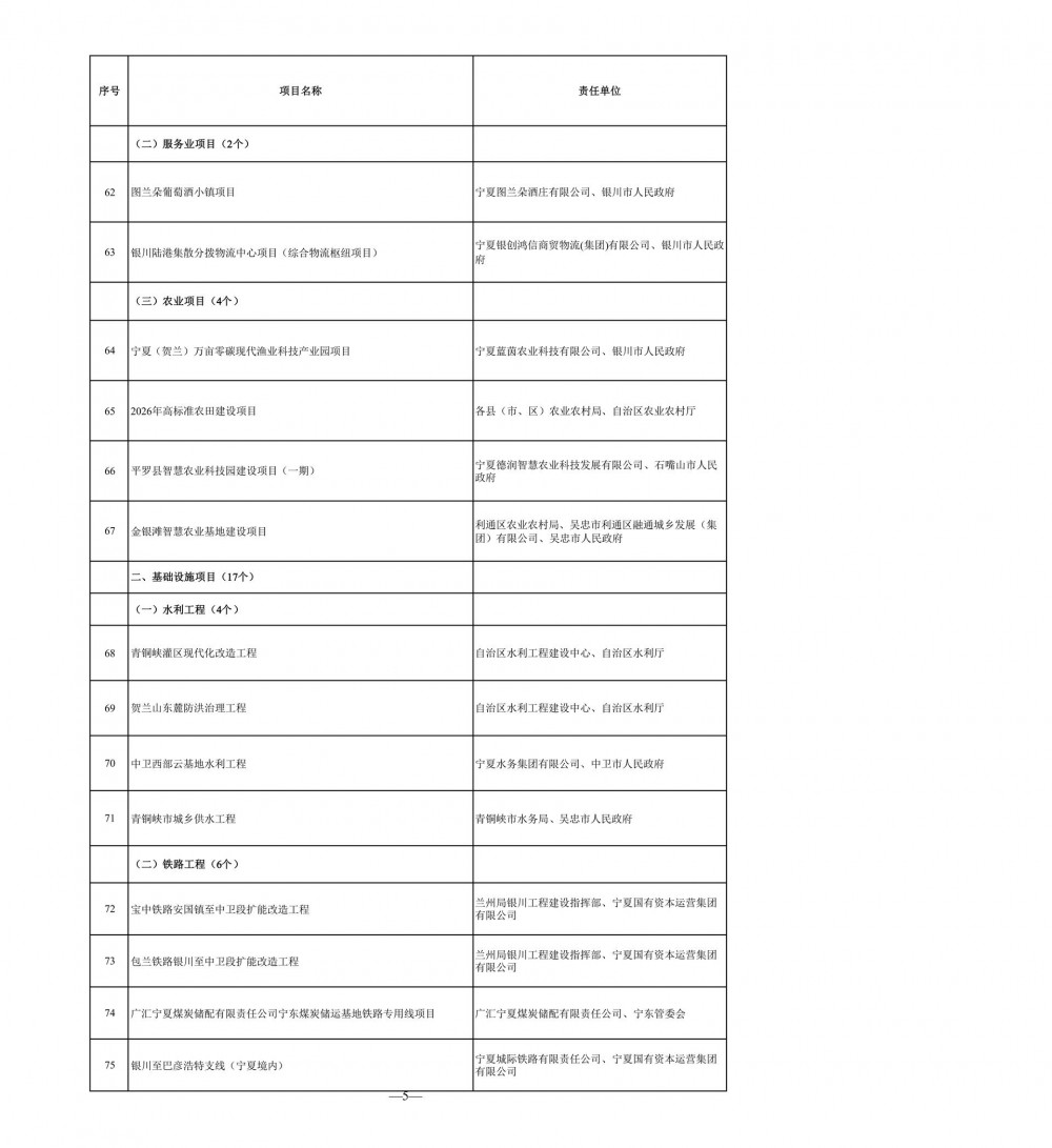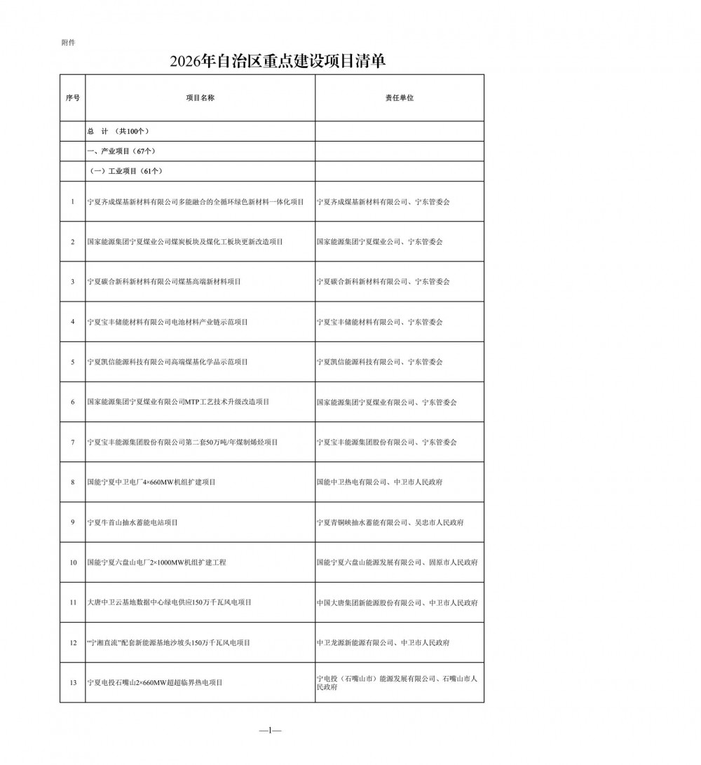 1月5日,宁夏回族自治区发展改革委公布2026年自治区重点建设项目清单。