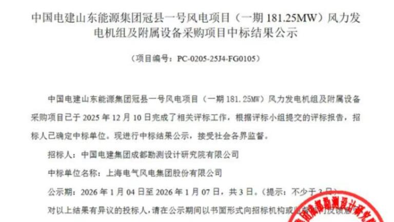 开年首捷,电气风电成功中标山东聊城181.25MW风电项目,为2026年发展强势开篇。该项目由山能(冠县)风电有限公司投资建设,选址山东省聊城市冠县,一期规划安装29台单机容量6.25MW的电气风电风力发电机组,配套29台箱式变压器,同步建设1座220kV升压站及运行管理中心,并铺设约16km送出工程。