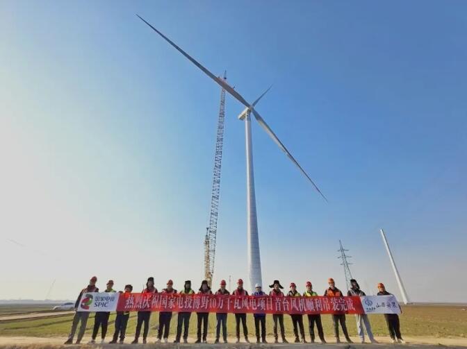 在深冬的冀中平原上,随着塔吊的轰鸣渐歇,由山西建投安装集团承建的国家电投博野10万千瓦风电项目完成首台风机吊装,一座洁白的“绿能巨人”迎着寒风舒展长臂,稳稳矗立在这片沃土之上。